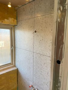 Het advies was om binnen de maatvoering van de badkamer te blijven. Er kon zo’n 60 cm van de slaapkamer afgesnoept worden, maar eigenlijk past alles ook binnen de huidige afmetingen. MarStyling heeft een aantal opties met verschillende kleuren en materialen gemaakt, waarvan deze opzet is gekozen.