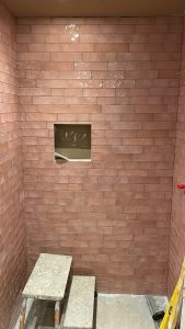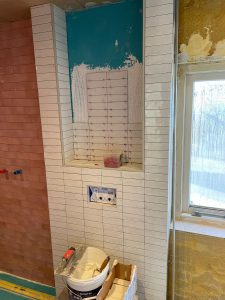 Op de bovenetage was al een compacte badkamer. De vraag was, zullen we een stukje van een slaapkamer opofferen voor een wat grotere badkamer of zijn er andere mogelijkheden? Én wil je iets bijzonders doen met kleur en materiaal.