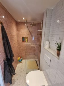 Een compacte badkamer voorzien van alle functies in rustige kleuren en toch bijzonder met gevoel voor stijl en sfeer