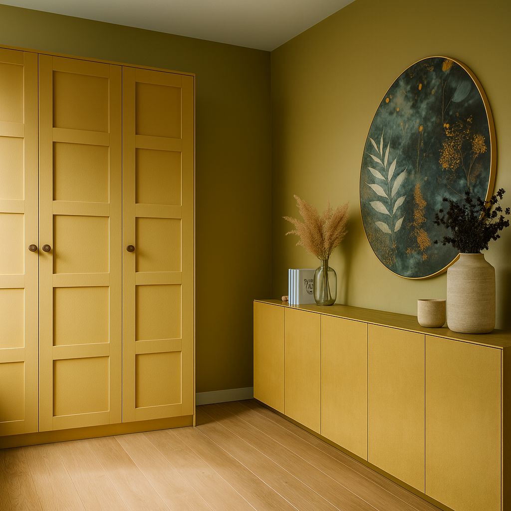 Warme kleuren, beetje stoer en per kamer een andere accentkleur was uitgangspunt voor het kleurgebruik in de ruimtes.