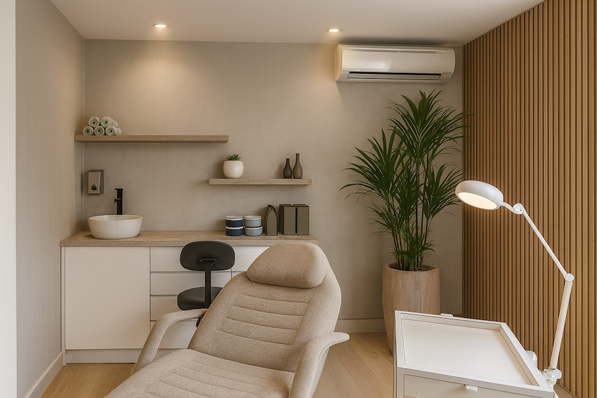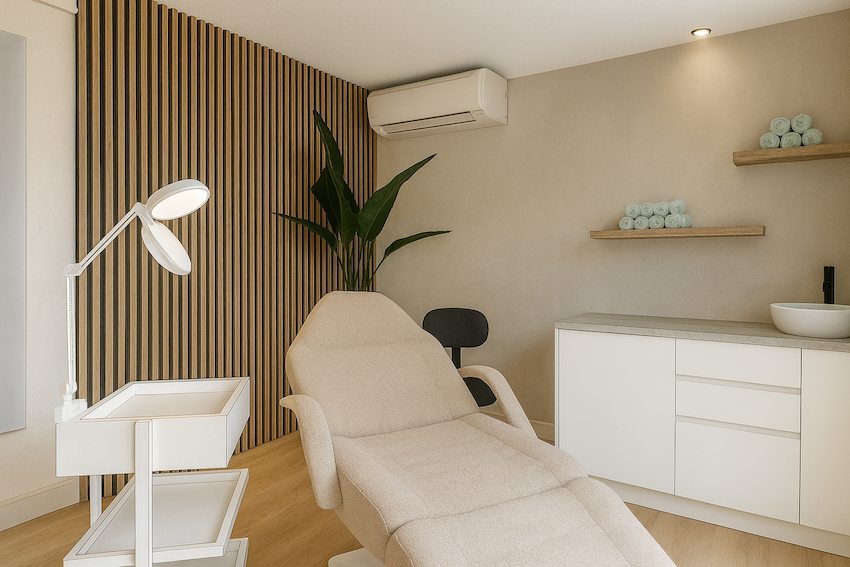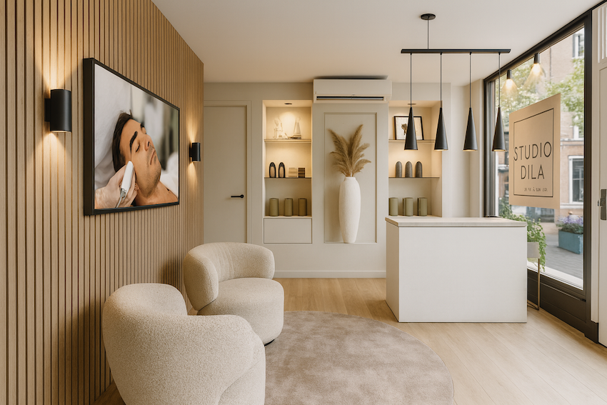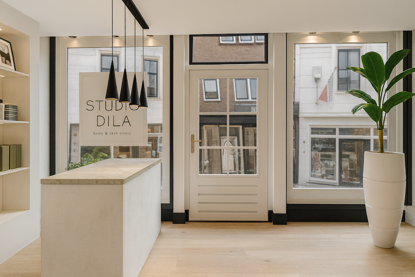 We hebben het pand bekeken en de wensen doorgesproken. Daarbinnen kwam aan bod: wat wil je uitstralen met je studio, wie ben je als ondernemer, welke behandelingen ga je aanbieden en hoeveel ruimte heb je daarvoor nodig. Fadila had al moodboards via pinterest over wat ze allemaal mooi vindt en ook al heel goed in beeld hoeveel behandelruimtes ze nodig heeft en hoeveel ruimte voor het maken van afspraken, wachtruimte en verkoopruimte.