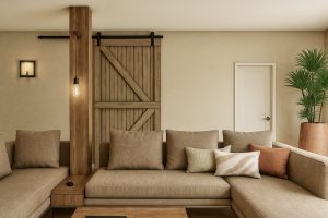 Er is gebruik gemaakt van stoere houten materialen, ingetogen en ook wat meer aanwezige kleuren en zo heeft elke ruimte het gevoel van de schuurwoning maar toch een eigen look en feel.