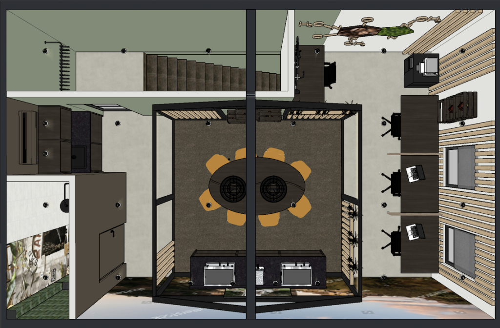 Onze werkzaamheden begonnen met de binnen indeling en het aanbrengen van de benodigde techniek. Hierna was het tijd om de wanden dicht te maken en de creatieve elementen tot leven te brengen. Zo realiseerden we een sfeervolle wand van lamellen en een inpandige kas – prachtige details die deze ruimte een unieke uitstraling geven. Daarnaast hebben we een systeemplafond gemaakt met daarin plafondplaten van OSB, wat zorgt voor extra ruimte en een onderscheidende sfeer.