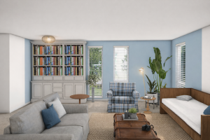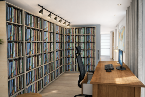 Om dat te bereiken is aan de achterzijde van de woning een aanbouw ontworpen en werd de bestaande garage omgebouwd naar werkkamer, bijkeuken en berging.